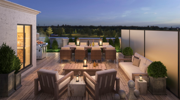 The rooftop terraces, which feature wood decks, also have frosted glass partitions, which give you some privacy from your neighbors. Having a BBQ on the deck is easy since it comes with gas connections and electrical outlets. Plus you can’t beat the view it offers you to the east and the west.